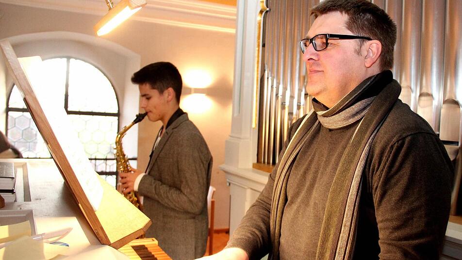 Zwischen den einzelnen Stücken gab es ab und zu eine "Sendepause" und Gastorganist Andreas Brunner spielte ein Weihnachtspräludium, in dem sich viele Weihnachtslieder versteckt hatten. Der 17-jährige Veit Dippold spielte auf seinem Saxophon "Feliz Navidad" zusammen mit Andreas Brunner an der Orgel.