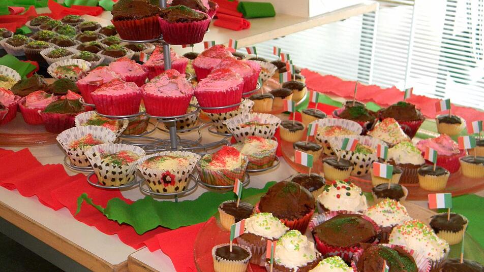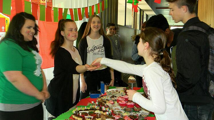 Auch die Gesichter der Jugendlichen zierte die Flagge der Region, deren Kreisstadt Castlebar ist. Mit einem Cupcake-Stand, auf dem 150 kunstvoll verzierte Törtchen zum Verzehr einluden, ging die Liebe zur irischen Insel auch durch den Magen der Irlandfans. Stolz zeigte sich die Irlandgruppe unter der Leitung von Lehrerin Tanya Fisher-Lehmann in T-Shirts, die an ihre tolle, unvergessliche Reise auf die grüne Insel erinnerten.