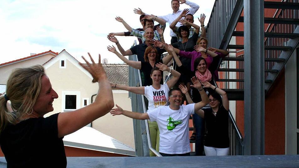 Mitmachen Ehrensache Das Apothekenteam neben dem Rathaus musste auch nicht lange überredet werden, bei diesem Tanzspaß mitzumachen. "Nur unser Papa hat zuerst etwas gezögert, verrät Apothekerin Ulrike Kießling dem FT. "Der Einfall aber ist super und lustig war's!", ergänzt ihre Schwester Julia, ebenfalls Apothekerin.