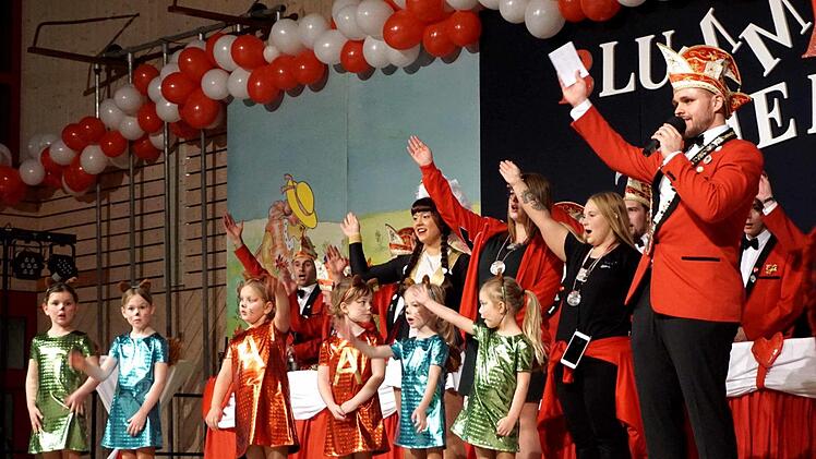 Nach dem Einmarsch der Garden, des Elferrates brachte ein Mariechen-Medley mit Sandra, Giulia, Zoe und Mira sowie die "Purzel" mit "Chipmunks" die Besucher schon mal auf Betriebstemperatur. Es folgten der "Sternchen"-Marschtanz sowie ein gekonnter Auftritt des Tanzpaares Nils und Milena sowie ein viel beklatschter Marschtanz der Jugend- und Juniorengarde. Dazwischen wurde die Stimmung vom "Frankenexpress" mit Andy und Mark noch und dem Marschtanz der Juniorengarde aufgeheizt.