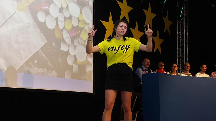 Länder-Karten an den Wänden - gemalt von Barbara Nowak - Fahnen und Tischdekos zeigten in der "Europa-Halle" die Nationalitäten auf. Hingegen fristete die "Brexit-Fahne" in der hintersten Ecke des Saales ein unbeachtetes Dasein.