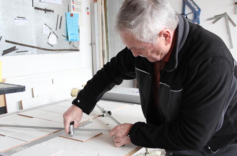 Die Welt von Günther Kropf ist meistens eckig - bei ihm dreht sich alles um Fliesen. Im Hof der Familie Kropf hängen metergroße Motive aus bunten Fliesen, Hausflur und Küche sind mit dunkelbraunen Terracotta-Platten gepflastert. Im Arbeitszimmer reiht sich eine Auszeichnung an die nächste, in den Regalen stehen Pokale und Orden.