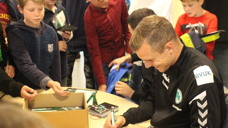 Während dieser hektischen Phase beim Kleeblatt hat sich Spieler Richard Magyar trotzdem Zeit genommen, um zum Schuljahresanfang eine Autogrammstunde im Gymnasium Höchstadt zu geben. Bereits seit vier Jahren kann sich das Gymnasium Partner der Spielvereinigung nennen, gemeinsam veranstaltete man schon viele Aktionen. So auch im Sommer eine von Schülern geleitete Pressekonferenz.
