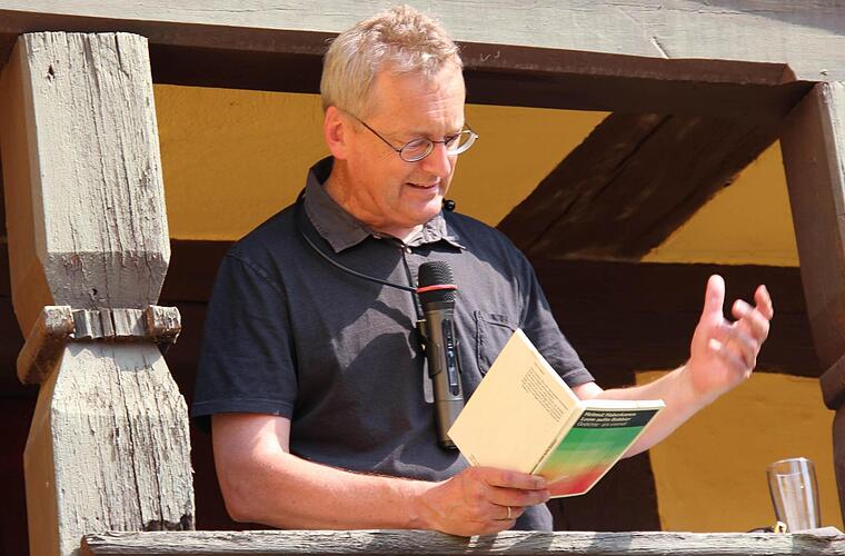 Autor Helmut Haberkamm machte sich am "Tag der Franken" im Adelsdorfer Schlossgraten für die einheimische Mundart stark.