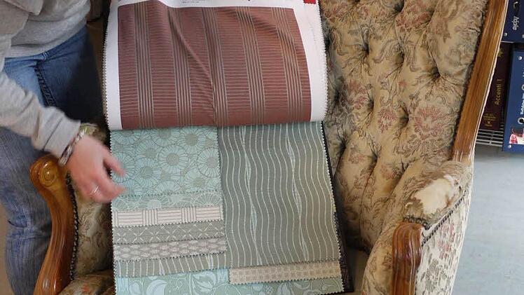Die Armlehnen des Chippendale-Sessel sind stark abgenutzt. Ein Erbstück. Mit einem modernen Stoffdesign soll es das Schmuckstück einer jungen Wohnung werden. "8000 Stoffe von sieben Firmen können wir unserem Kunden anbieten", sagt die junge Polsterin, die einem wichtigen Teil des Raumausstatterhandwerks ausübt.Selbst aus Rosshaar gewebte Stoffe oder echte Jacquard-Muster sind darunter , für historische Möbel. Leder hat Buchhold auch noch zur Auswahl. Das ist kein e Modeerscheinung unserer Tage, leitet sich der andernorts gebräuchliche Namen ihres Handwerks - Sattler - eindeutig davon ab.