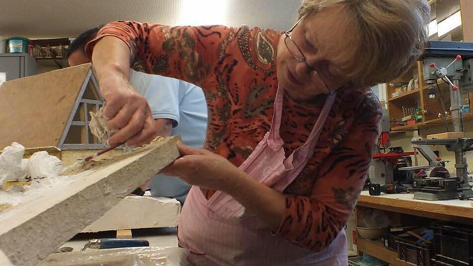 Beginn des Kurses war Ende September, jeden Freitagabend und am Samstagvormittag arbeiten die Kursteilnehmer an ihrer Krippe. Eine der Interessenten ist Marianne Baer, die bereits das fünfte Jahr dabei ist. Erst die zweite gebaute Krippe hat sie für sich hergestellt.