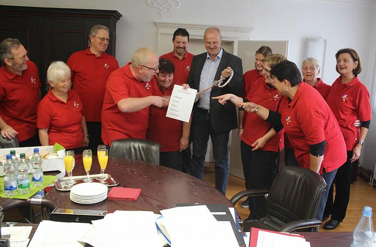Die Narren sind an der Macht. Punkt 11.11 Uhr stürmten am Dienstag elf Höchstädter Fosänachter das Amtszimmer von Bürgermeister Gerald Brehm(JL) in Höchstadt . Andreas Hänjes entriss dem Gemeindechef den mächtigen Schlüssel fürs Rathaus und hielt seinem Vorgänger eine donnernde Predigt. Goldene Zeiten brechen wohl bis Aschermittwoch an.