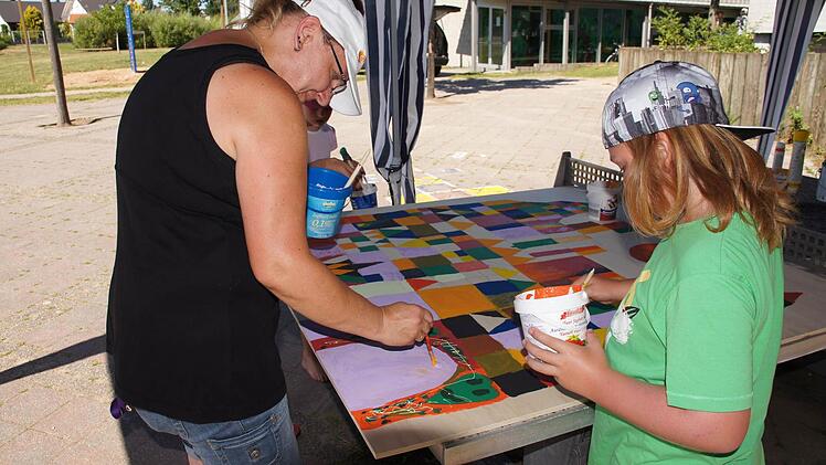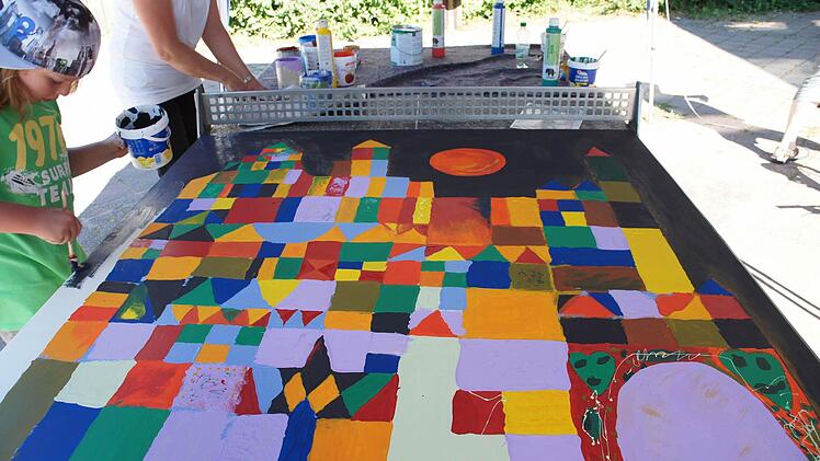 "Multiple Choice" oder deutsch "Mehrfachauswahl" war eine gute Gestaltungs-Idee, um die Schüler froh sein zu lassen. Denn an der Königsburg, die unter der künstlerischen Leitung von Lutz Bräutigam in Anlehnung an das Gemälde "Burg und Sonne" von Paul Klee entstand, konnten jeweils nur zwei bis drei Kinder gleichzeitig malen.