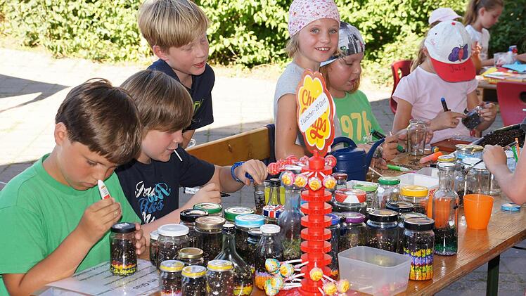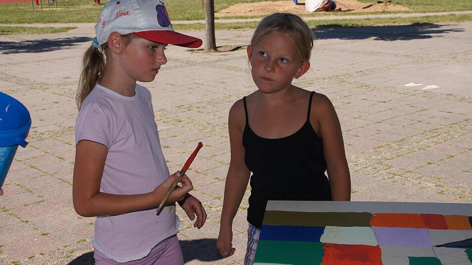 Bei bestem Sonnenschein kamen rund 30 Kinder zu diesem Ferienprogramm auf das Gelände der Grundschule und realisierten die zweite Zeile des Volksliedes: "Und wer froh ist, ist ein König."