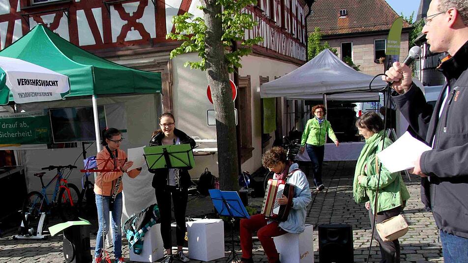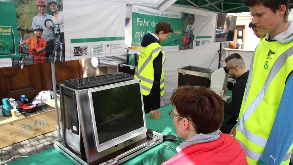 Bei der Gebietsverkehrswacht, die mit zahlreichen Testgeräten auf dem Markplatz präsent war, wurde insbesondere der Fahrradhelm thematisiert, was besonders beim Bürgermeister auf Zustimmung stieß. Er sehe täglich auf seinem Weg zum Rathaus Erwachsene und erschreckend viele Kinder auf dem Weg zur Schule, die ohne Helm unterwegs sind.