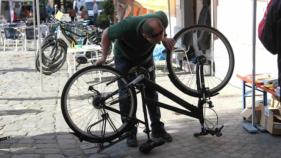 Neu bei der Messe waren auch die Firma Köppel Radreisen, die Fahrradreisen durch ganz Europa anbietet, sowie im Schlosshof das Jugendhaus "Rabatz" mit einer Fahrradversteigerung. Unter den Hammer von Auktionatorin Claudia Belzer kamen Fundfahrräder, der Erlös kommt der Fahrradwerkstatt zugute.