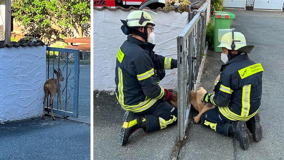 "Hat gespürt, ihm wird geholfen": Feuerwehr Herzogenaurach rettet Rehkitz aus Gartentor