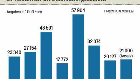 Rund 21 Millionen Euro Gewerbesteuer sind die Haupteinnahmen, dicht gefolgt von knapp 17 Millionen Euro aus der Einkommenssteuerbeteiligung, die von Jahr zu Jahr ansteigt. Dem gegenüber stehen aber Investitionen in die Infrastruktur, und die Herzowerke werden in diesem Jahr ebenfalls wieder viel Geld unter die Erde bringen, sagte dazu der Bürgermeister.