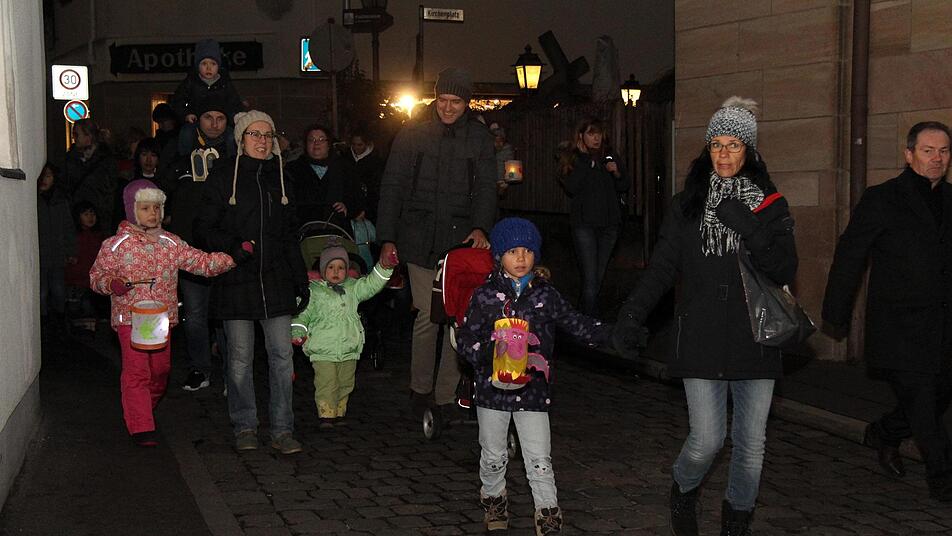 Bevor dieser startete, erinnerte Pastoralreferent Thomas Matzick an die Geschichte des heiligen Martin, der als römischer Soldat seinen Mantel mit einem frierenden Bettler geteilt haben soll. "Er begleitet noch heute, über 1600 Jahre nach seinem Tod, das Kirchenjahr und verkörpert für viele Menschen eine gelebte Nächstenliebe. Derjenige, der seinen Besitz mit anderen teilt, bereitet sich auch selbst eine Freude", erklärte Thomas Matzick. Nach der kurzen Andacht und zu den Klängen der Stadtjugendkapelle setzten sich Ross und Reiter sowie die Kinder mit ihren Eltern in Bewegung.