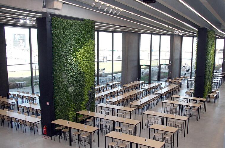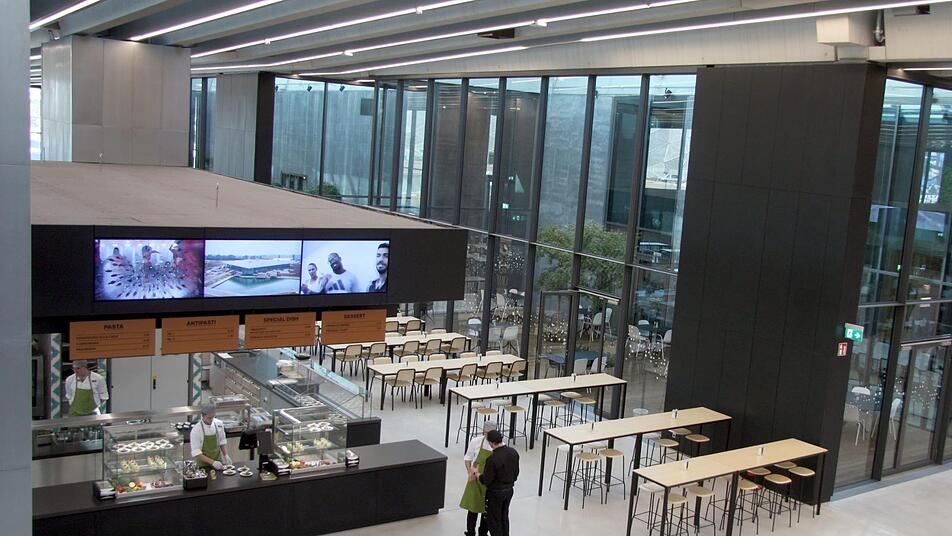 Neben einem wechselnden Essensangebot von fünf verschiedenen Ausgabestellen können sich die Mitarbeiter auch über eine neue Bäckerei freuen, die täglich ab 2.30 Uhr frisches Brot backt. Für sonnige Tage gibt es eine Terrasse direkt am See. Dieser dient gleichzeitig auch zur Kühlung des Gebäudes. Das Gebäude befindet sich momentan in der international anerkannten LEED-Zertifizierung und strebt die Qualitätsstufe Gold für ökologisch extrem leistungsstarke Gebäude an.