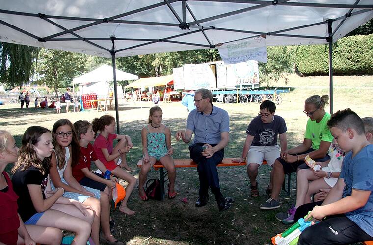 Viele Fragen rund um seine Person und um die Stadt hatten die Mädchen und Buben gestern bei der Bürgermeister-Sprechstunde am Spielmobil an German Hacker (SPD). Dass Kinder mit offenen Augen durch die Stadt gehen, wurde Herzogenaurachs Stadtoberhaupt schnell klar, als er von Sina wegen einiger aufgerissenen Straßen gefragt wurde. Der Bürgermeister erklärte den Kindern, dass immer wieder alte Kanäle ausgewechselt und Leitungen verlegt werden müssen und die Arbeiten bewusst in die Ferienzeit gelegt werden. Denn da fahren keine Schulbusse und viele Leute seien auch im Urlaub.