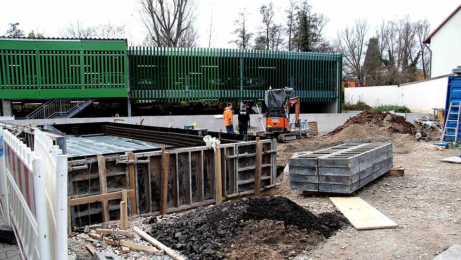 Auch am Platz an der Nordseite des Parkdecks wird bereits kräftig gearbeitet. Dort wird ein Imbissgebäude errichtet. Zudem entstehen eine überdachte Abstellfläche für Fahrräder und viele neue Sitzgelegenheiten.