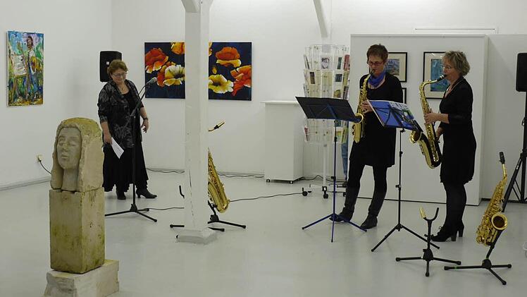 Das gab den Künstlern die Möglichkeit, die Besucher in ihr Schaffen der letzten Monate blicken zu lassen. So ist ein beeindruckende Vielfalt zusammengekommen. Das breite Spektrum spiegelte sich auch im Programm der Eröffnung wider. Die Saxophonistinnen Andrea Aegerter und Karin Sammetinger schlugen einen Bogen vom Jazz zur Klassik und Isolde Wettstein trug ins Ironische spielende Weihnachtslyrik vor.
