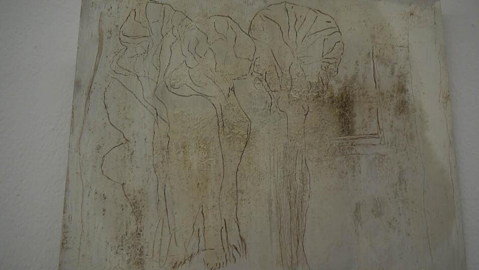 Material-Kompositionen Auffallend für den Betrachter sind die vielen Arbeiten im Materialmix, vor allem Gemälde mit dreidimensionalen "Einsprengseln". So tauschte Karin Mersmann den zu malenden Blumentopf in ihrem titellosen Bild gegen Bruchstücke von Keramik aus oder Angelika Santer verwandelte Holzplatten mit Farbe und Bienenwachs in täuschend echte Schiefer(tafel)strukturen, die sie dann noch mit alten schönen Schriftstück fragmenten verband. Damit hat sie eine fassbare Metapher für das Wort, das Sprechen und Schreiben geschaffen, haben doch die älteren Aussteller und auch die älteren Besucher selber als ABC-Schützen noch die Schiefertafel verwendet.