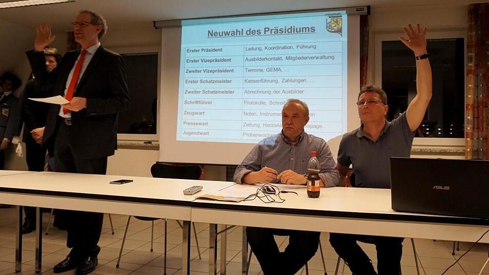 Der zur Hauptversammlung eingebrachte Antrag, das Präsidium um Beisitzer zu erweitern, fand allerdings keine Mehrheit. Wie der neu gewählte Präsident und die ehemalige Kassiererin erklärten, werden zu den erweiterten Sitzungen bereits die Vertreter sämtlicher Orchester eingeladen und es finden sich auch immer wieder Mitglieder, die sich bei den unterschiedlichen Vereinstätigkeiten freiwillig engagieren.