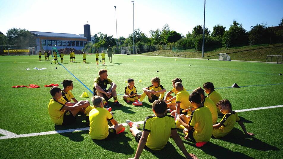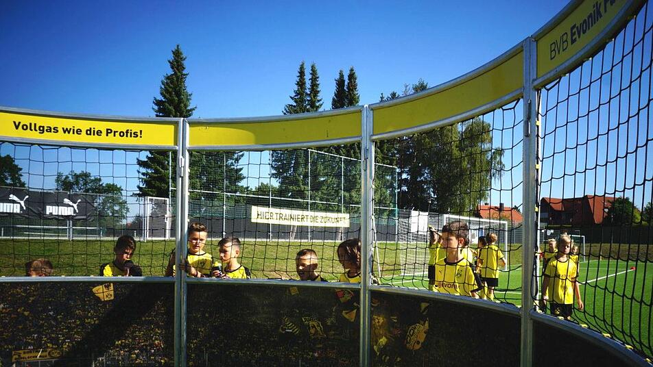 Eingekleidet wie die Profis von Borussia Dortmund kicken noch bis Freitag 40 junge Fußballer auf dem Lothar-Matthäus-Sportplatz in Herzogenaurach. Die Fußballakademie "BVB Evonik " machte auf dem Vereinsgelände des FC Station. An dem Trainingslager nahmen Kinder von Puma-Mitarbeitern und Nachwuchskicker des FC Herzogenaurach teil. Auch über das Ferienprogramm hatte man sich für das Camp anmelden können.