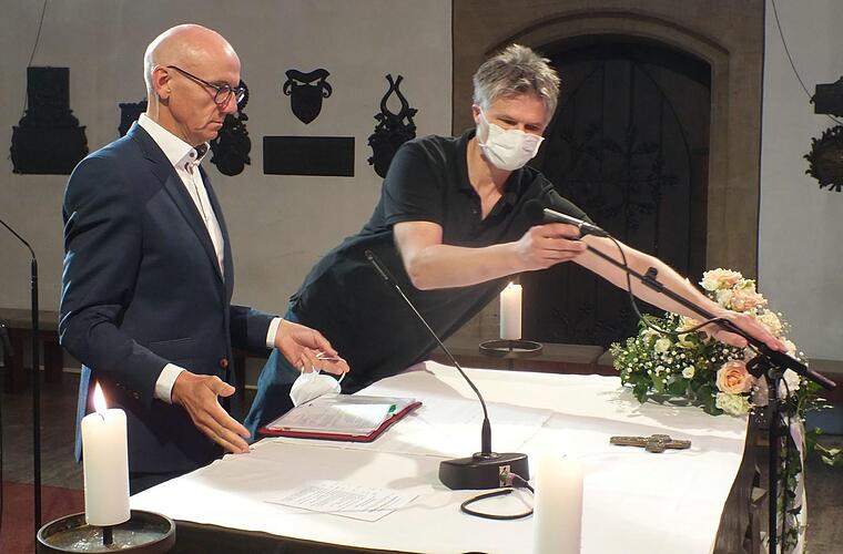 Monika Tremel, Pastoralreferentin und eine der Leiterinnen der Einrichtung "Offene Tür Erlangen", koordiniert für das Erzbistum Bamberg die Übertragungsorte. Dabei kommt es auf mehrere Faktoren an, eine Rolle spielen die örtlichen Gegebenheiten im Gotteshaus, die musikalische Umrahmung, aber auch die Fähigkeit des Zelebranten, verständlich für jeden Zuhörer die Messe zu gestalten. Für die Musik zeichneten Toni Rotter an der Orgel und der Chor verantwortlich.