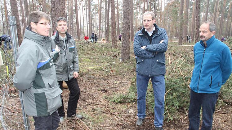 Besser als die Theorie Heike Grumann und der Chef der zuständigen Forstbehörde, Peter Pröbstle, erläuterten zusammen mit den Waldarbeitern nicht nur die Praxis - also wie der junge Baum in die Erde kommt, so ganz nebenbei erklärten sie wichtiges zum Wald und seinen Bewuchs.