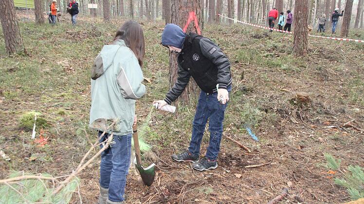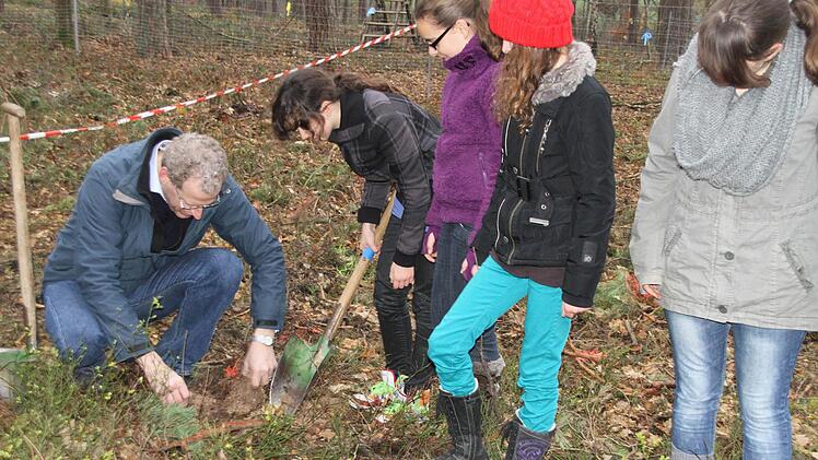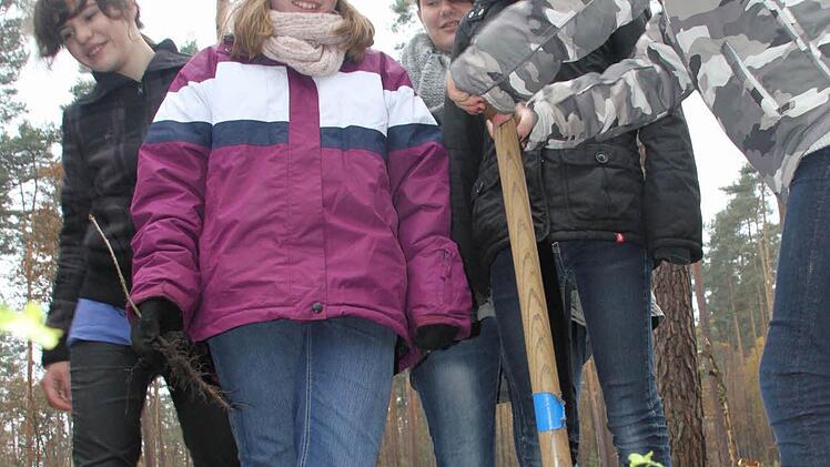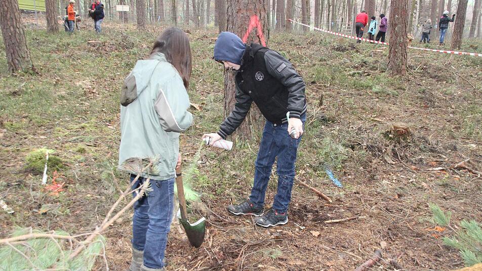 Besser als Unterricht - die Schüler sind sich einig. Obwohl sie sich nicht ausruhen dürfen oder an irgendeiner Spielekonsole daddeln. Sie sind inmitten des Herzogenauracher Dohnwaldes und arbeiten schwer körperlich. Da wird der harte Boden aufgehackt, Löcher gegraben und Bäume gepflanzt. 2700 Stück an der Zahl.