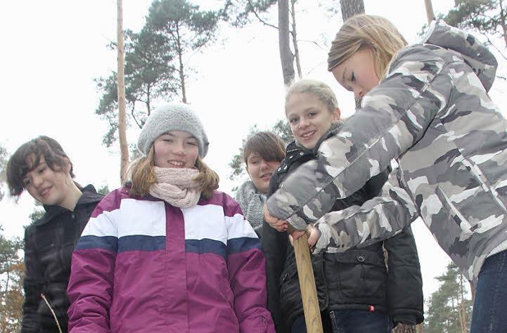 Mitstreiter fand Langer im Bürgermeister German Hacker (SPD), der Revierförsterin Heike Grumann und dem Vorsitzenden der Waldcorporation Helmut Müller. Der letztere wusste Bescheid, wo die Bäume gepflanzt werden dürfen. Ein Waldstück im Dohnwald schien für diese Aktion hervorragend geeignet. So ganz nebenbei sorgte er dafür, dass die Schüler mit Wienerle gestärkt werden und eine Feuerstelle zum Aufwärmen eingerichtet wurde. Über den Satz "Besser als Unterricht" schmunzelten dann alle Beteiligten.