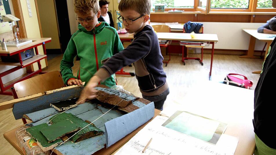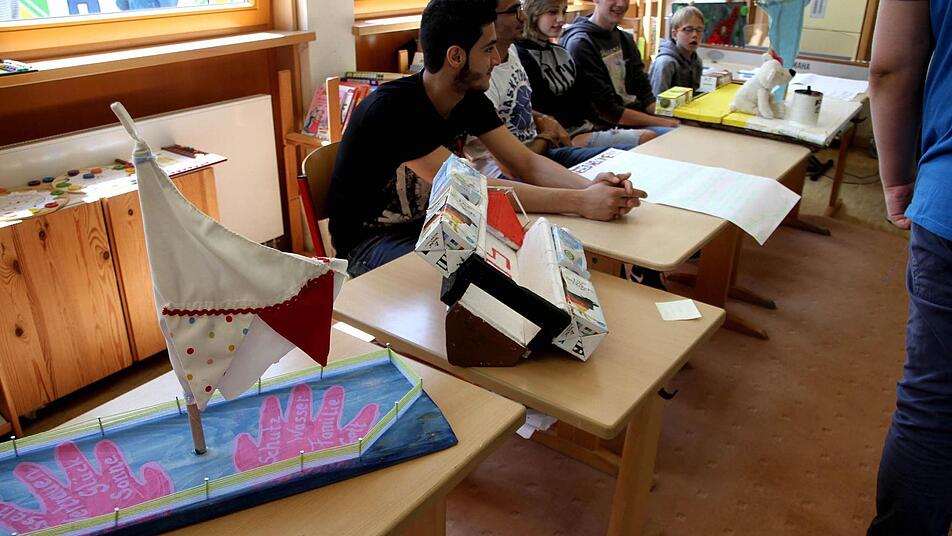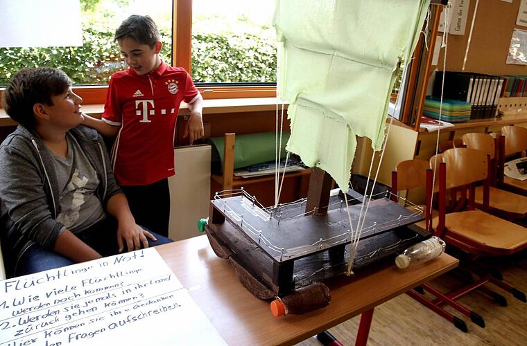 "Ich glaube, das Boot schwimmt nicht und säuft ab", meinte Tim, als sich bei der Präsentation das Ruder löste. Damit kam er der Wahrheit sogar ziemlich nahe, denn das Boot, das er mit seinem Klassenkameraden Paul gezimmert hatte, sollte ein Flüchtlingsboot darstellen.