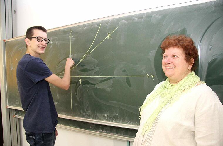 Stolz zeigten sich die beiden Lehrerinnen auf Daniel Kreiner aus der zwölften Klasse, der trotz der mündlichen Prüfungen zum Abitur auch so ganz "nebenbei" am Wettbewerb teilnahm und einen zweiten Preis erreichte. "Das ist unser Vorzeigeschüler", stellten die beiden Mathelehrerinnen fest. Es sei sehr erfreulich, dass sich auch immer wieder einzelne Abiturienten - trotz Abistress - bewusst für diesen Wettbewerb entscheiden. Da sie Jahr für Jahr seit der fünften Klasse teilgenommen haben, gehöre dies für sie auch im Abschlussjahr einfach zum Schulleben.