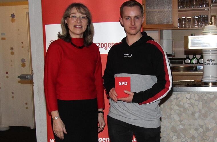 Die Ortsvorsitzende Renate Schroff zeigte sich in ihrem Rechenschaftsbericht zuversichtlich. So halte die Eintrittswelle nach dem Schulz-Hype und dem katastrophalen Wahlergebnis weiter an. Im vergangenen Jahr konnten acht neue Mitglieder aufgenommen werden, derzeit hat der Ortsverein 141 Mitglieder. Vor allem die "Junge SPD" bringe sich aktiv ins Parteigeschehen ein und drücke damit auch den Altersdurchschnitt, denn die Altersgruppe der 50- bis 70-Jährigen stelle immer noch den höchsten Anteil im Ortsverein. Mit dem jungen Lukas Hußenetter konnte die Vorsitzende auch gleich einen Neueintritt begrüßen und ihm das Parteibuch überreichen.