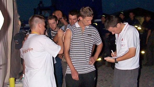 Es war ein Donnerstag, der 15. August 2002. Um 1 Uhr nachts erfolgte bayernweit die Alarmierung aller Rettungsleitstellen und Kreisverbände des Bayerischen Roten Kreuzes, so auch für ERH. Kirsten Fraedrich von der BRK-Bereitschaft Erlangen erinnert sich: "Um 4.30 Uhr fuhren 31 Helfer mit sieben Fahrzeugen vom Hof der Rettungswache des BRK in Erlangen. Ein Hilfeersuchen der Technischen Einsatzleitung Sachsen hatte Bayern erreicht - für die Bewältigung der Hochwasserkatastrophe in Sachsen wurde dringend Hilfe benötigt."