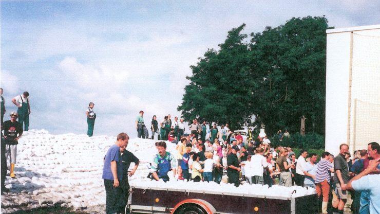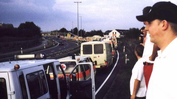 Helfer des Roten Kreuzes rückten am 15. August 2002 zum Einsatz nach Sachsen aus. Aus Herzogenaurach kam finanzielle Hilfe.