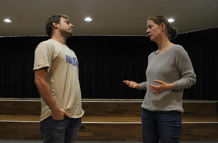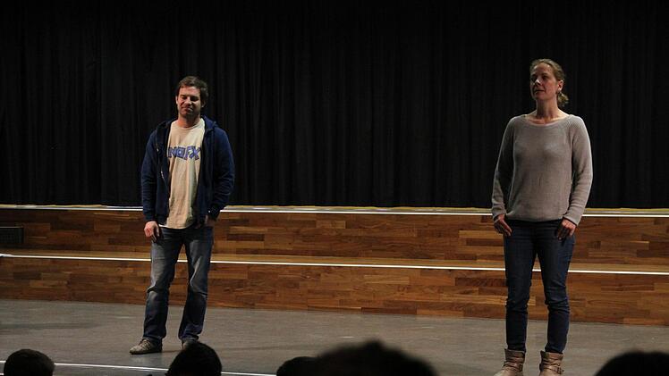 Umrahmt war das Stück von einer geschichtlichen Einordnung durch den Geschichtslehrer Rolf Kraus und Musikstücken der musizierenden Schüler. Die beiden hervorragenden Schauspieler kamen vom Mobilen Schultheater "ueTheater" aus Regensburg.