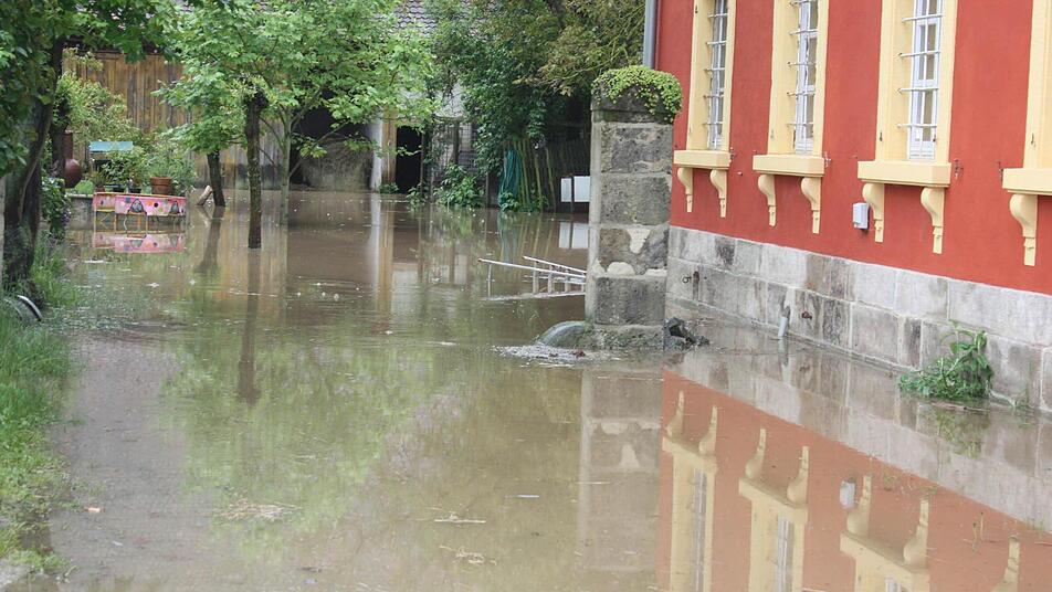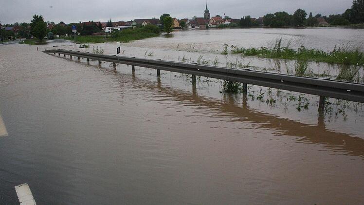 Um halb fünf Uhr am Samstagmorgen war die Welt noch in Ordnung in der Mühlenstraße in Uehlfeld (Kreis Neustadt-Aisch). Wenig später forderte der Dauerregen der vergangenen Tage und seinen Tribut: Die Aisch erreichte einen Höchststand und die Bundesstraße 470 musste wegen der Fluten umgeleitet werden.
