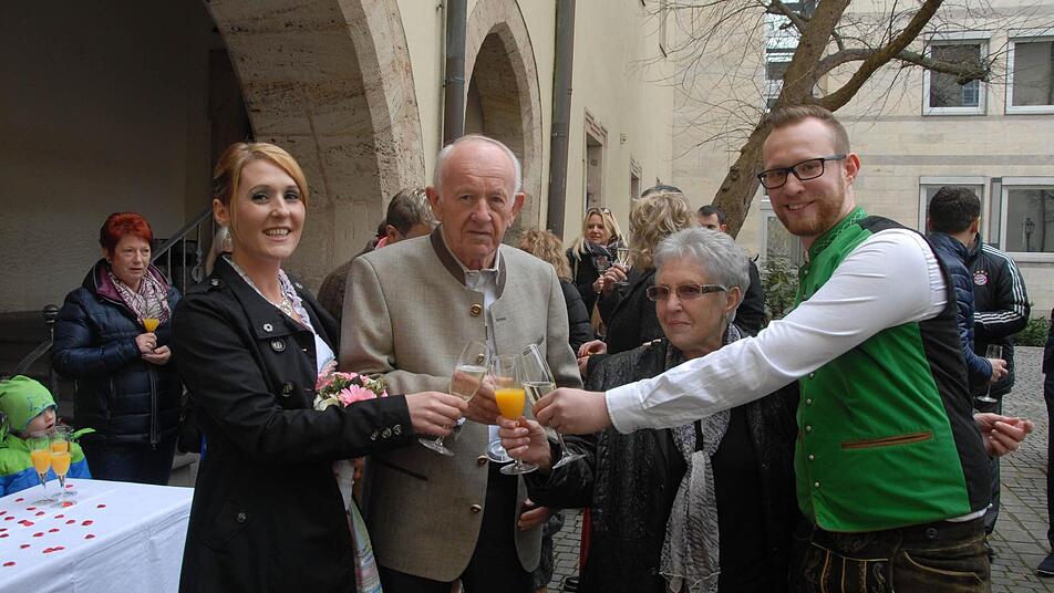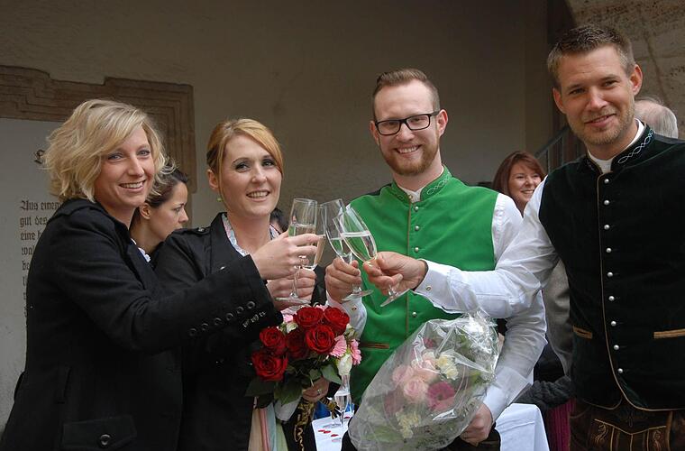 "Für uns ist es ein Glückstag", sagte die 32-jährige Braut. Und das umso mehr, als auch Bastis Großeltern just an einem solchen Freitag, den 13., geheiratet haben. Resi und Franz Kirschner sind heute beide 80 und seit 57 Jahren verheiratet. "Und es klappt immer noch", sagte Resi gestern beim kleinen Umtrunk im Schlosshof. Genau das ist der Ansporn für die jungen Brautleute. "Das ist auch unser Ziel", sagte Christina.
