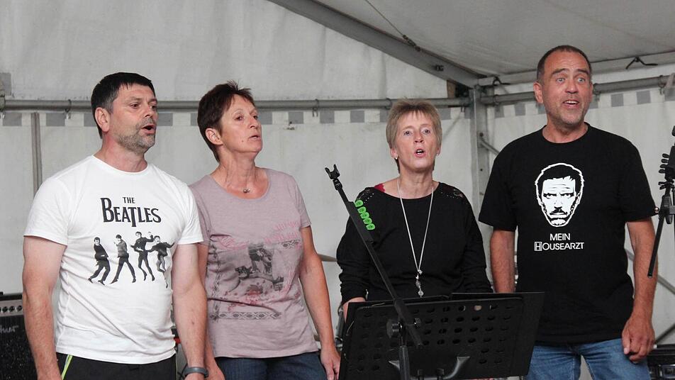 Mit einem kleinen Programm präsentierte sich die A-Capella-Gruppe "VierXang" aus Singgarten (=Biengarten) dem Publikum und erntete großen Applaus. "Normalerweise singen wir klassisch modern, aber heute hört ihr zum Beispiel Beatles-Songs", verriet Wolfgang Maier, der musikalische Leiter der Gruppe.