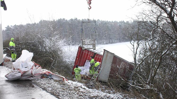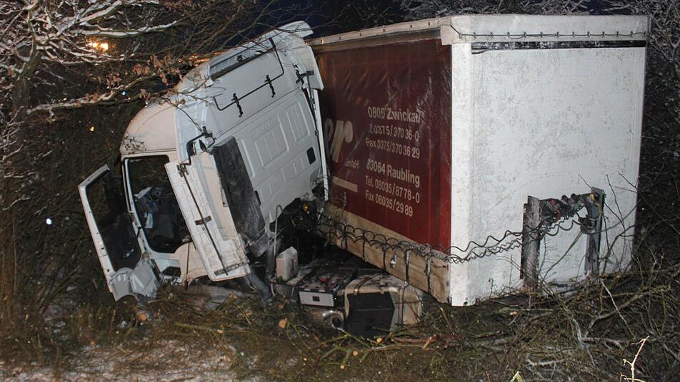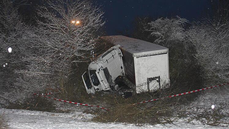 Ein spektakulärer Unfall ereignete sich am Freitag in den frühen Morgenstunden auf der Autobahn 3 bei Höchstadt. Ein Sattelzug kam auf der glatten Fahrbahn ins Schleudern und stürzte eine Böschung hinunter.