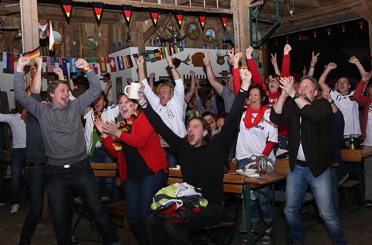 Wer nicht allein feiern wollte, traf sich zum Public Viewing am Adidas-Outlet in Herzogenaurach oder auch in der WM-Scheune des Gasthauses Geyer in Medbach. Oder er suchte eine der vielen Gaststätten in der Umgebung auf, die zum Rudelgucken eingeladen hatten. Dort waren die Blicke zum Anpfiff des Spiels in Rio de Janeiro um 21 Uhr alle auf die Bildschirme gerichtet. Die Atmosphäre war angespannt und hoffnungsfroh.