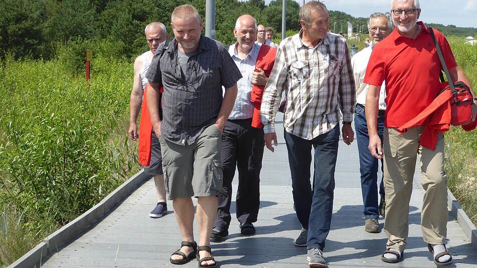 "Die erste Hälfte haben wir im Sommer 2014 in Swinemünde beendet und dort haben wir diesmal auch wieder angefangen und die Umrundung zu Ende geführt", fährt Hamm, der die Fahrt ausgearbeitet hat, fort. Mit dem Zug waren sie mit einem "Quer-durchs-Land-Ticket" von Forchheim ins polnische Swinemünde gefahren. Die Räder waren natürlich dabei, voll bepackt mit Zelt, Schlafsack, Wäsche und Reiseproviant. Ziel in Swinemünde war die Partnerpfarrei von St. Georg in Höchstadt. Sie nennt sich "Błogosławionego Michała Kozala" (Seliger Michael Kozal). Dort verbrachten sie die ersten zwei Tage bei Freunden und wohnten in einem Pfarrer-Erholungsheim. Pfarrer Gregor Jankowiak, den die Höchstadter von seinen Sommervertretungen her kennen, hatte sich genauso um sie gekümmert wie Eugen Japtok, ein Hotelbesitzer in Swinemünde, der schon bei der Sternwallfahrt in Rom 2011 dabei war.