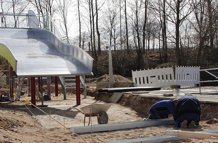 Die Umbaumaßnahmen werden nicht pünktlich zur Saisoneröffnung im Mai fertig. Das Freibad hat dann zwar schon offen, nebenbei wird aber noch gebaut. Eigentlich sollten die Bauarbeiten bis Ende Juni fertig sein, doch Brehm ist skeptisch. Die Gesamtmaßnahme bis zum ursprünglichen Datum fertigzustellen sei sehr ambitioniert.