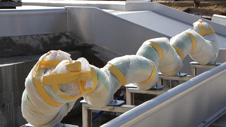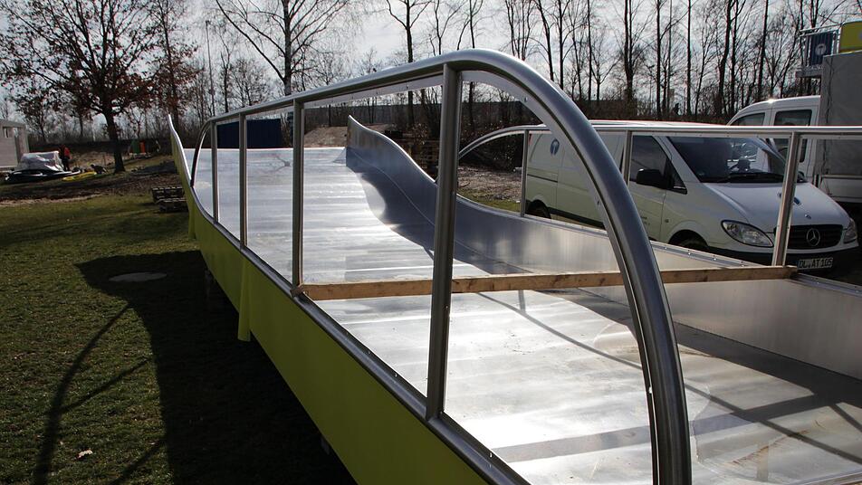 Über eine Treppe sollen die Besucher später an das Ende des Freizeitgeräts gelangen, um in ein rund 30 Zentimeter tiefes Auslaufbecken zu rutschen, wie Karl-Heinz Zillich erklärt. Der stellvertretende Betriebsleiter des Sportzentrums sagte am Mittwoch weiter: "Die Rutsche ist im Wasserkreislauf mit angeschlossen."