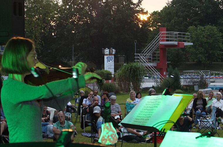 Das Ambiente war traumhaft. Die Stimmung nahezu andächtig. Die Besucher lauschten fasziniert und vollkommen still den musikalischen Genüssen. Als dann noch ein zauberhaftes Abendrot den westlichen Horizont rosarot anhauchte, hatte das Kultur-Picknick im Freibad seinen Namen tatsächlich verdient: "Sundowner" hatten die Initiatorinnen Susanne Bayer und Nadja Müller als Titel über die Veranstaltung geschrieben.