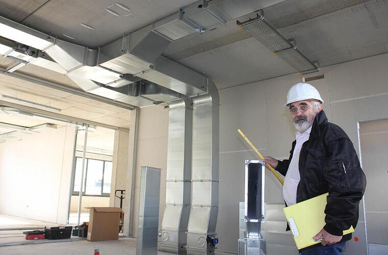 Weil die drei Klassenzimmer und die Fachräume für Biologie, Chemie, Kunst und Informatik dann luftdicht verschlossen sind, werden alle Räume mechanisch belüftet. "Die Notwendigkeit einer guten Lüftung wird aber oft unterschätzt", stellt Architekt Gerhard Neumann fest.