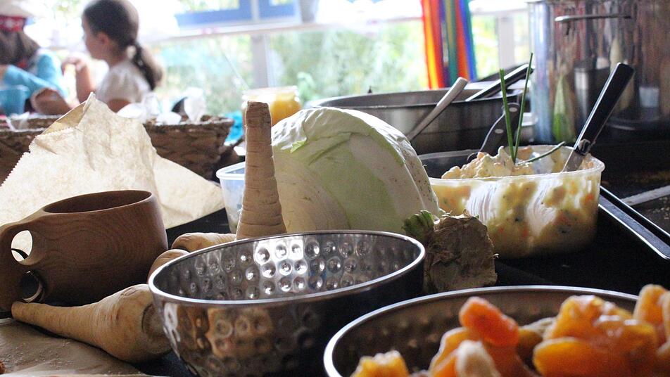 Zu Tisch gebeten wurden am Mittwochmittag die Grundschüler der Anton-Wölker-Grundschule. Und das nicht etwa in der schuleigenen Mensa zu Schnitzel mit Pommes und Ketchup, sondern ganz mittelalterlich zu einer Gemüsesuppe und selbst gebackenem Brot. Das, was die Schüler an ihrer Tafel am Mittwoch verspeisten, haben die kleinen nämlich auch selbst hergestellt. So gab es eine Auswahl an Brotaufstrichen, eine Gemüsesuppe, Brot, selbstgemachten Tee und sogenannte "Reformationsbrötchen". Das sind süße Teigwaren, die - mit Rosinen gefüllt - gefaltet sind wie die "Luther-Rose", das Briefsiegel Martin Luthers.