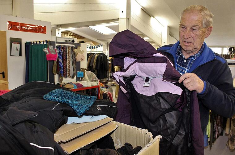 "Wir mussten praktisch nichts aussortieren", sagte Dieter Frömter, der seit 18 Jahren im Kreislauf-Kaufhaus arbeitet und es mit aufgebaut hat. Alles sei sauber und von guter, ja hochwertiger Qualität gewesen. Frömter ist anzusehen, dass er seine Arbeit liebt.