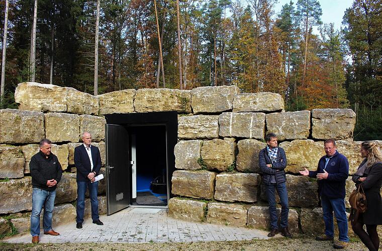 Die Brunnenstube liegt mitten im Wald. Harmonisch fügt sich das Bauwerk aus Natursteinblöcken in die Landschaft ein - fast als wäre es immer schon dagewesen. Bürgermeister Gerald Brehm (JL) hatte zur Übergabe alle eingeladen, die an dem Werk beteiligt waren: Stadträte und Planer, Mitarbeiter der Wasserversorgung und des Bauamts, ausführende Firmen, Vertreter des Landratsamtes und der Forstverwaltung. Denn die Tiefbrunnen wurden im Staatswald Birkach, bewirtschaftet durch den Forstbetrieb Forchheim, niedergebracht.
