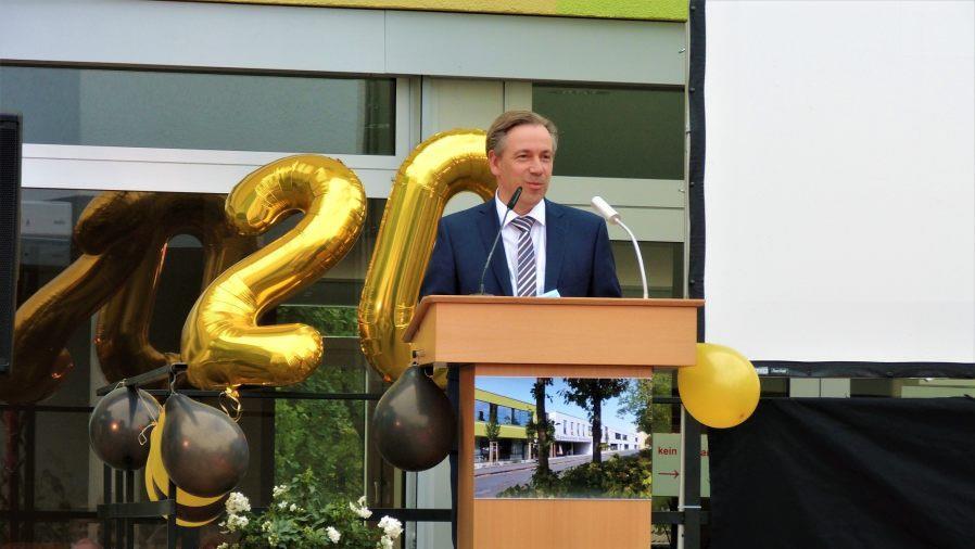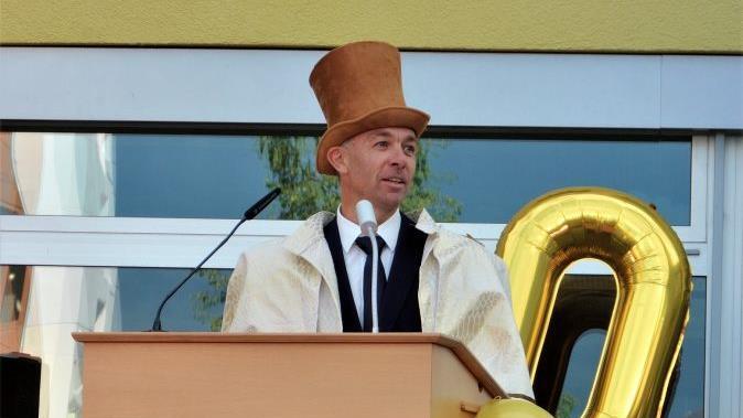 "Ich wünsche, dass Sie Ihren Weg machen und dass Sie das Glück nicht liegen lassen", gab Axel Rogner, Dritter Bürgermeister (JL), den jungen Menschen mit auf den Weg. Birgit Völker tritt für den Elternbeirat ans Mikrofon, der als Andenken für jeden Absolventen eine Tasse mit dem diesjährigen Motto bereithält, "Lasst die Welt wieder golden werden", sagte sie.