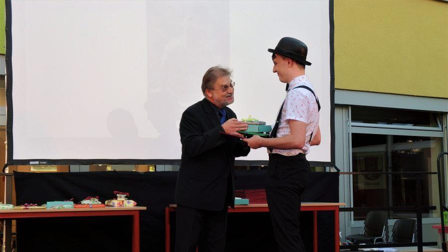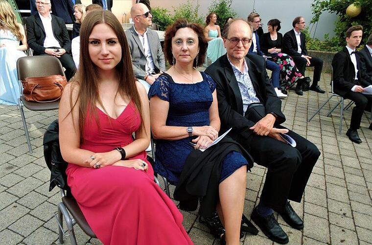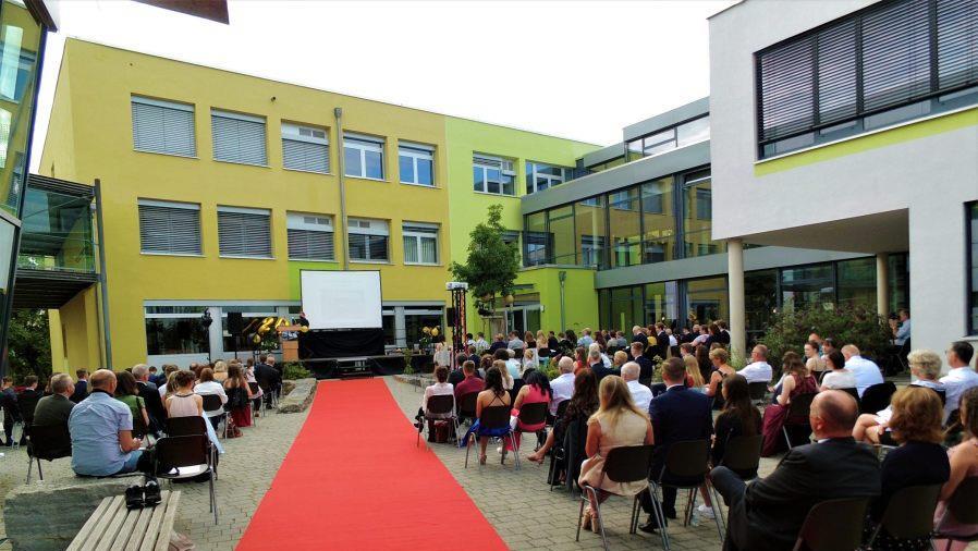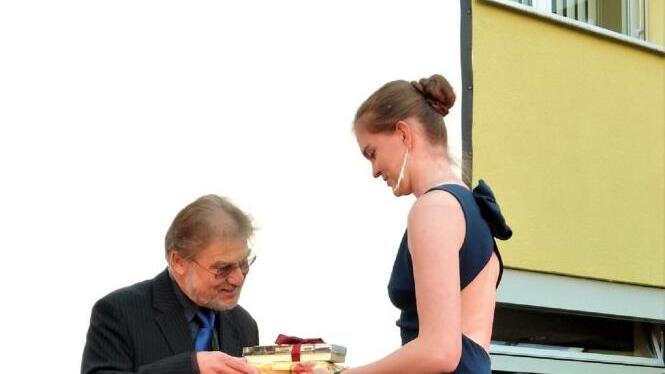 Dass sich dieser Jahrgang durchaus sehen lassen konnte, zeigte sich bei der Verleihung der Abiturzeugnisse. Über einen roten Teppich schritten die jungen Damen und Herren stolz vor zur Bühne, wo Deinzer jedem das Zeugnis in einer roten Mappe überreichte.